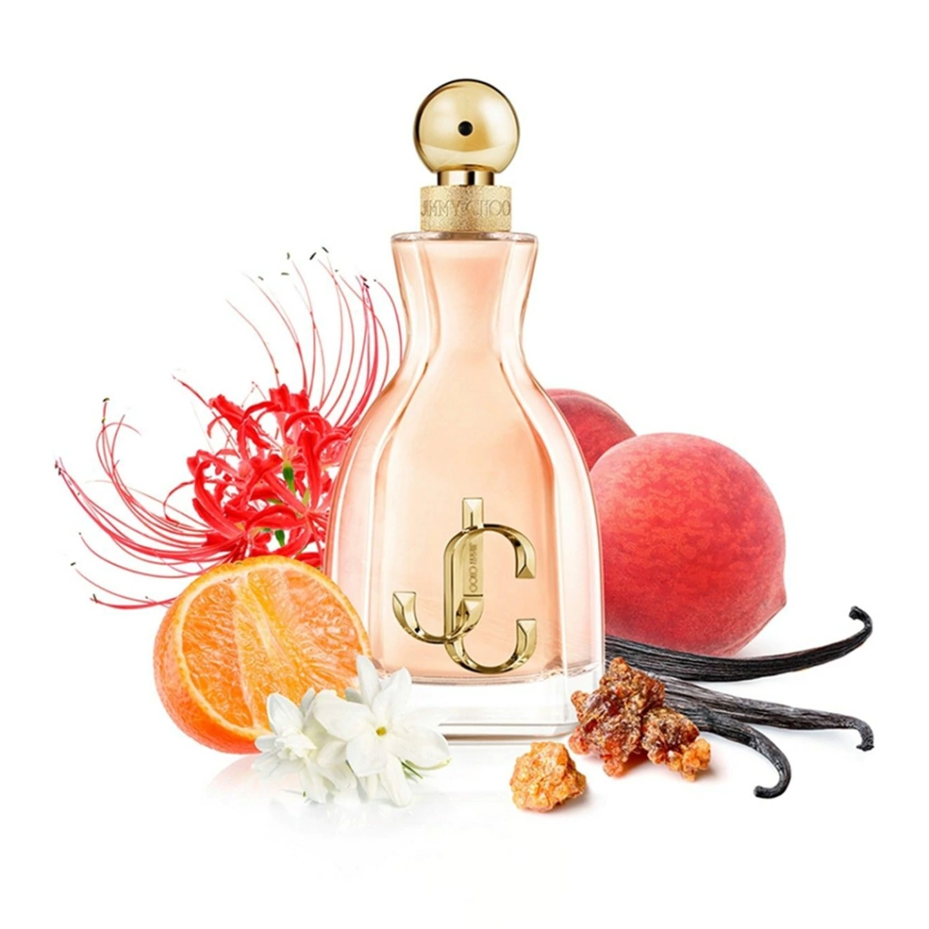 I Want Choo de Jimmy Choo é uma fragrância feminina radiante, glamourosa e irresistível, feita para mulheres que adoram brilhar e aproveitar cada momento com confiança e alegria. É um perfume que captura a essência da celebração, unindo sensualidade, diversão e elegância em um só frasco. Ele se abre com notas luminosas de pêssego suculento e tangerina, evolui para um coração floral exuberante de jasmim sambac e lírio-vermelho, e finaliza com uma base cremosa e envolvente de baunilha e benjoim. Perfeito para quem ama perfumes doces, sofisticados e cheios de personalidade.